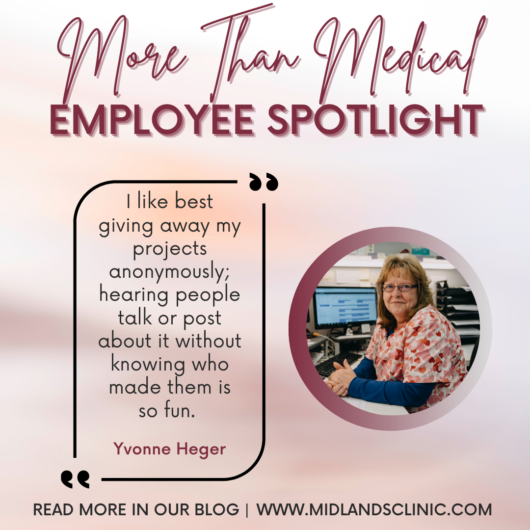 Midlands Clinic is an organization full of multi-faceted employees who deserve recognition and highlighting. Our next employee under the spotlight is Yvonne Heger, who is a scheduler for our general surgery department but also a talented creative in her free time!